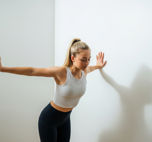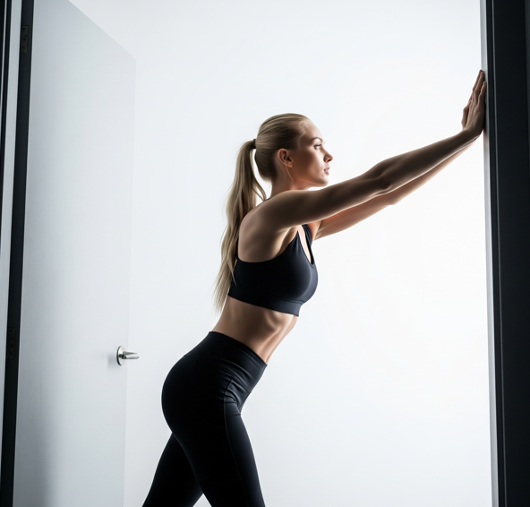 The doorway stretch is a simple yet powerful move that targets tight chest (pectoral) muscles, especially helpful for desk workers, gym-goers, and anyone battling “hunched” posture. Just using a door frame, this stretch helps counteract hours of slouching or phone use!